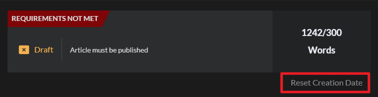 - Scroll to the bottom of the challenge widget and click on Reset Creation Date. This process will update the creation date of the article to the current date.